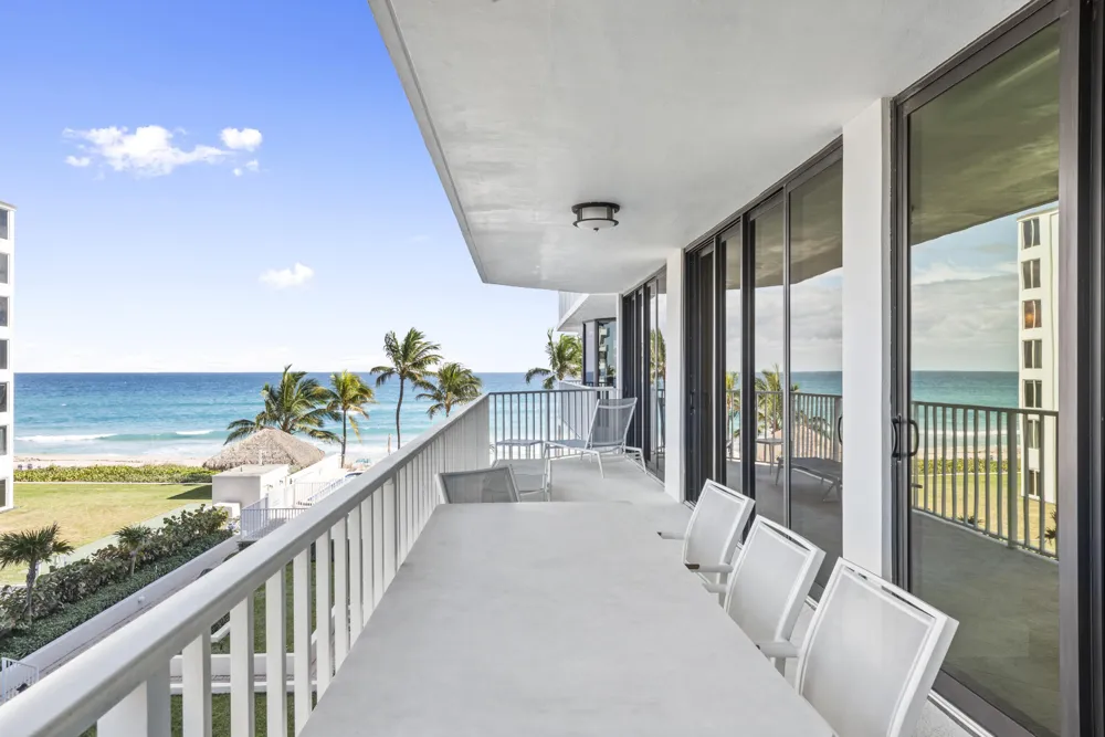 This beautifully renovated and furnished, comfortable -yet modern, 3 bedroom residence features both ocean and Intracoastal views from the living areas as well as the two spacious balconies (completely renovated in 2024), that span the entire length of the condo, offering an enriched oceanfront indoor/outdoor living experience, combining generous and thoughtful space allocations. Den/3rd bedroom further expands the living room, the entertaining space and ocean view when guests are not present. The split floorplan features large bedrooms and bathrooms, with the feeling of two primary suites, in addition to the transitional third en-suite bedroom /den, adjacent to the living room. Beautiful, thoughtfully appointed furniture (Restoration Hardware etc) can be included. Recertified Bldg This building has just completed concrete restoration, roof, and is fully funding for SIRS items. it is recertified. The building has impact glass throughout. New residential corridors and a brand new social room are going in at the time this property being listed.