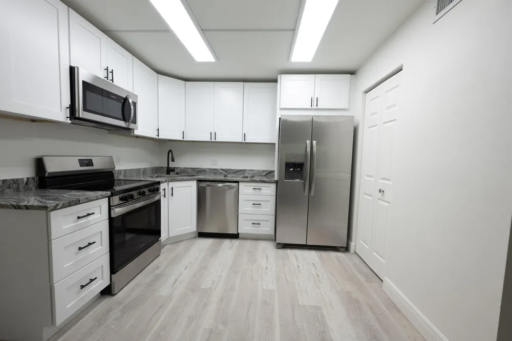 Step into comfort and convenience with this fully updated 1 bedroom, 1 bath first-floor condo, ideally located with easy access to I-95 and the Turnpike. The open-concept kitchen is a chef's dream, featuring stainless steel appliances, crisp white shaker cabinetry, and elegant granite countertop. Enjoy the ease of in-unit laundry with a brand-new full-size washer and dryer, plus stylish new vinyl plank flooring throughout. Relax in the spacious screened porch—perfect for sipping your morning coffee or unwinding in the evening. Bathroom has been tastefully updated, and brand-new hurricane impact windows will be installed within weeks, adding peace of mind and energy efficiency. Amenities include a large pool, tennis and racquetball courts, BBQ areas, & scenic walking paths with lake view